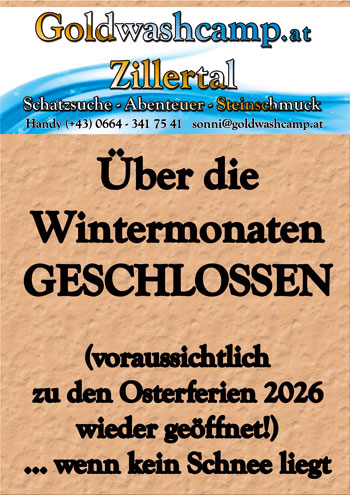 Ein Goldwaschkurs ist in der Hauptsaison (Juli und August) wegen hohem Gästeaufkommen nur von Donnerstag bis Sonntag mit Voranmeldung und ab 12 Jahren möglich!